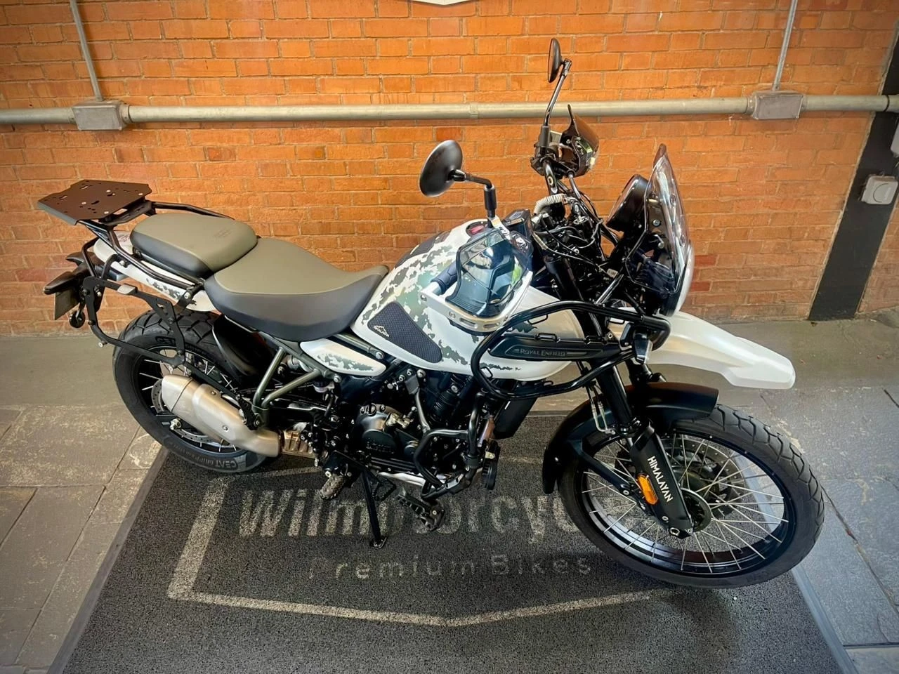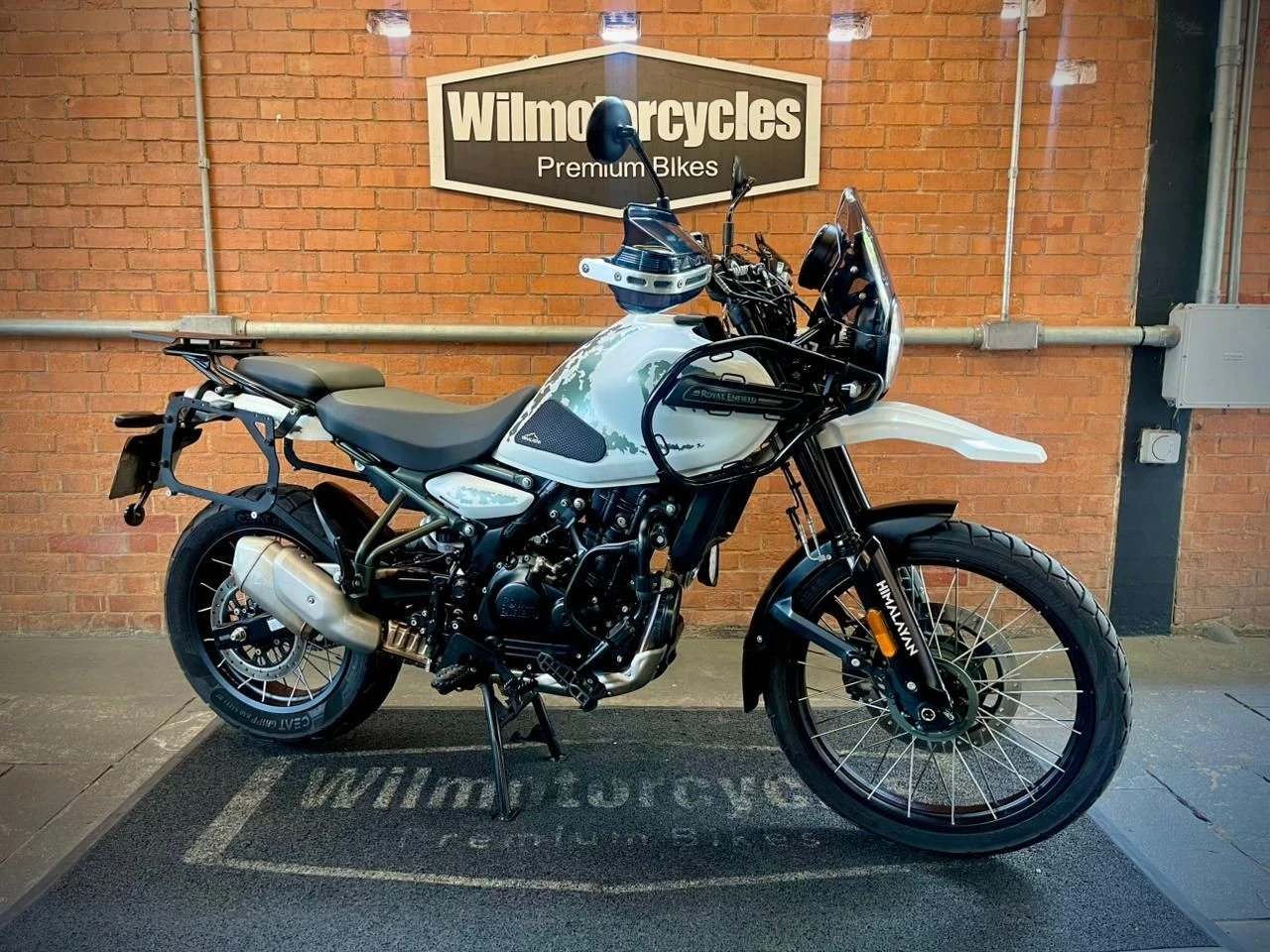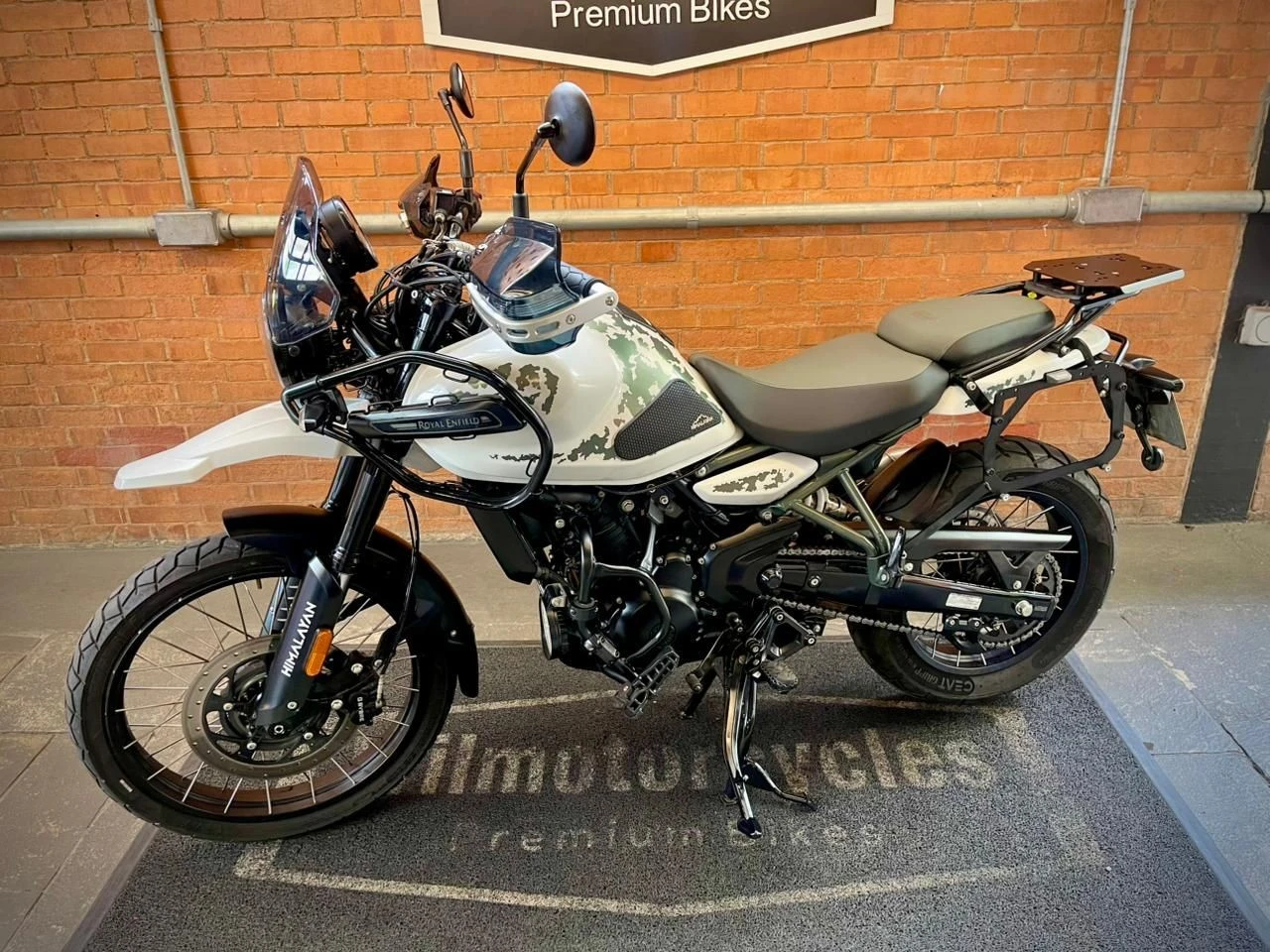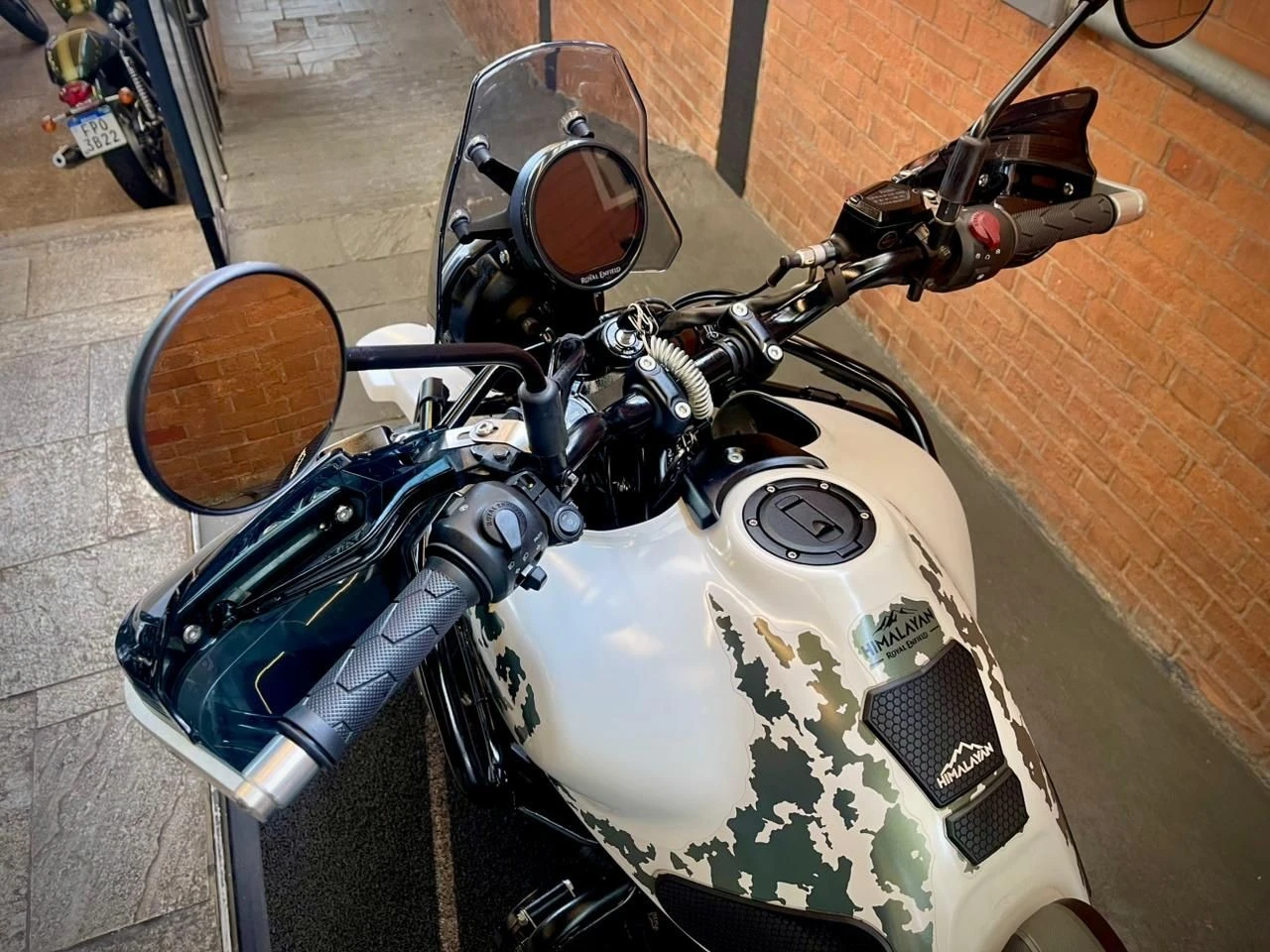 Royal Enfield Himalayan Kamet White; moto totalmente original e muito bem conservada; baixa quilometragem; equipada com pneus sem câmara; garantia de fábrica ativa; revisões em dia; faróis auxiliares instalados; suporte para baú oferecendo mais praticidade; ideal para quem busca uma trail moderna, robusta e preparada para qualquer aventura com conforto e confiabilidade; WILMOTORCYCLES, SUA MOTO ESTÁ AQUI.
