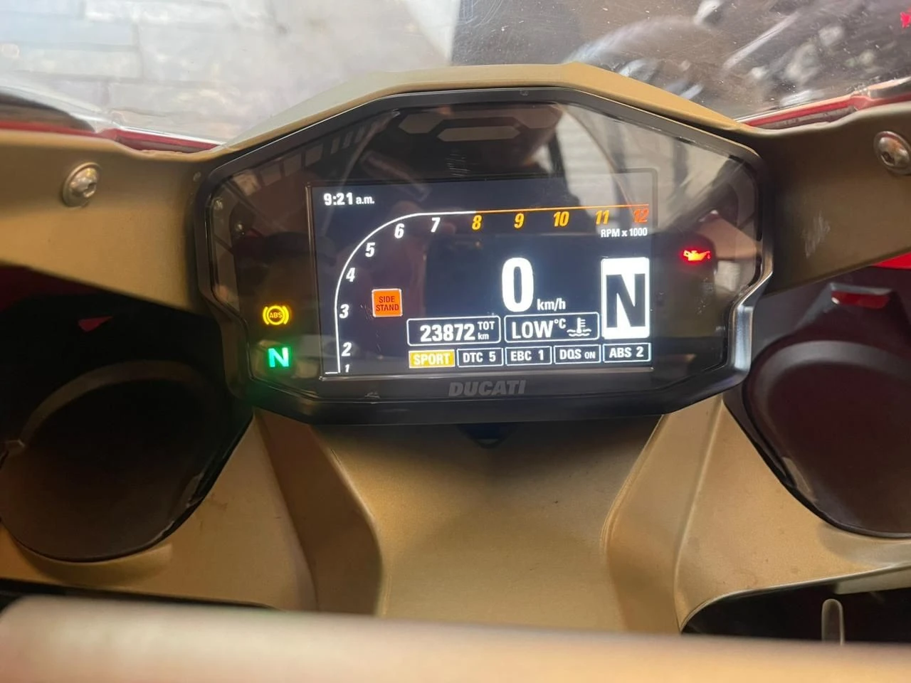 Ducati Panigale; superesportiva com design agressivo e desempenho impressionante; muito bem conservada; equipada com sistema de freios com assistência; controle de tração; modos de pilotagem; relação em bom estado; pneus novos; pastilhas em bom estado; fluidos em dia; óleo do motor em dia; amortecedor de direção; painel moderno; farol em led; configuração monoposto traseira; sistema de troca de marchas assistida; ideal para quem busca performance, tecnologia e exclusividade em uma verdadeira máquina italiana; WILMOTORCYCLES, SUA MOTO ESTÁ AQUI.