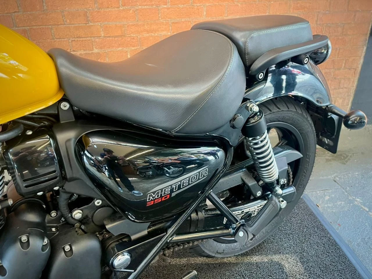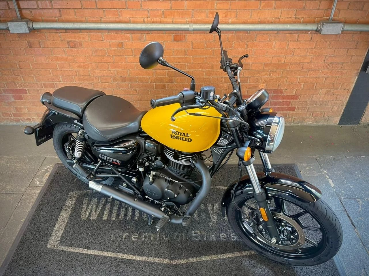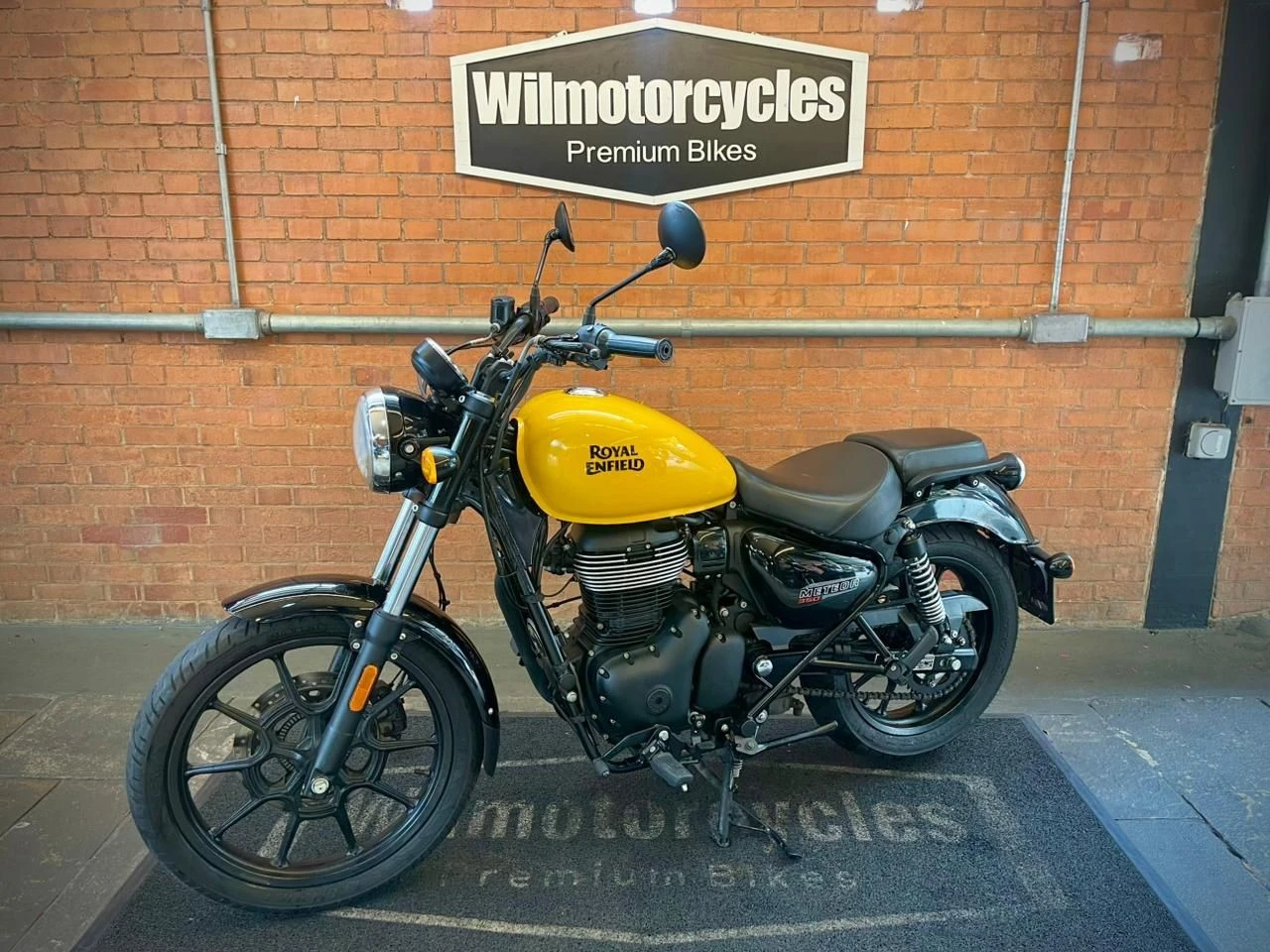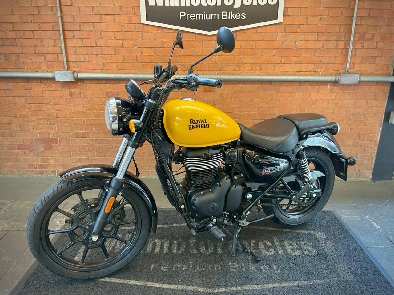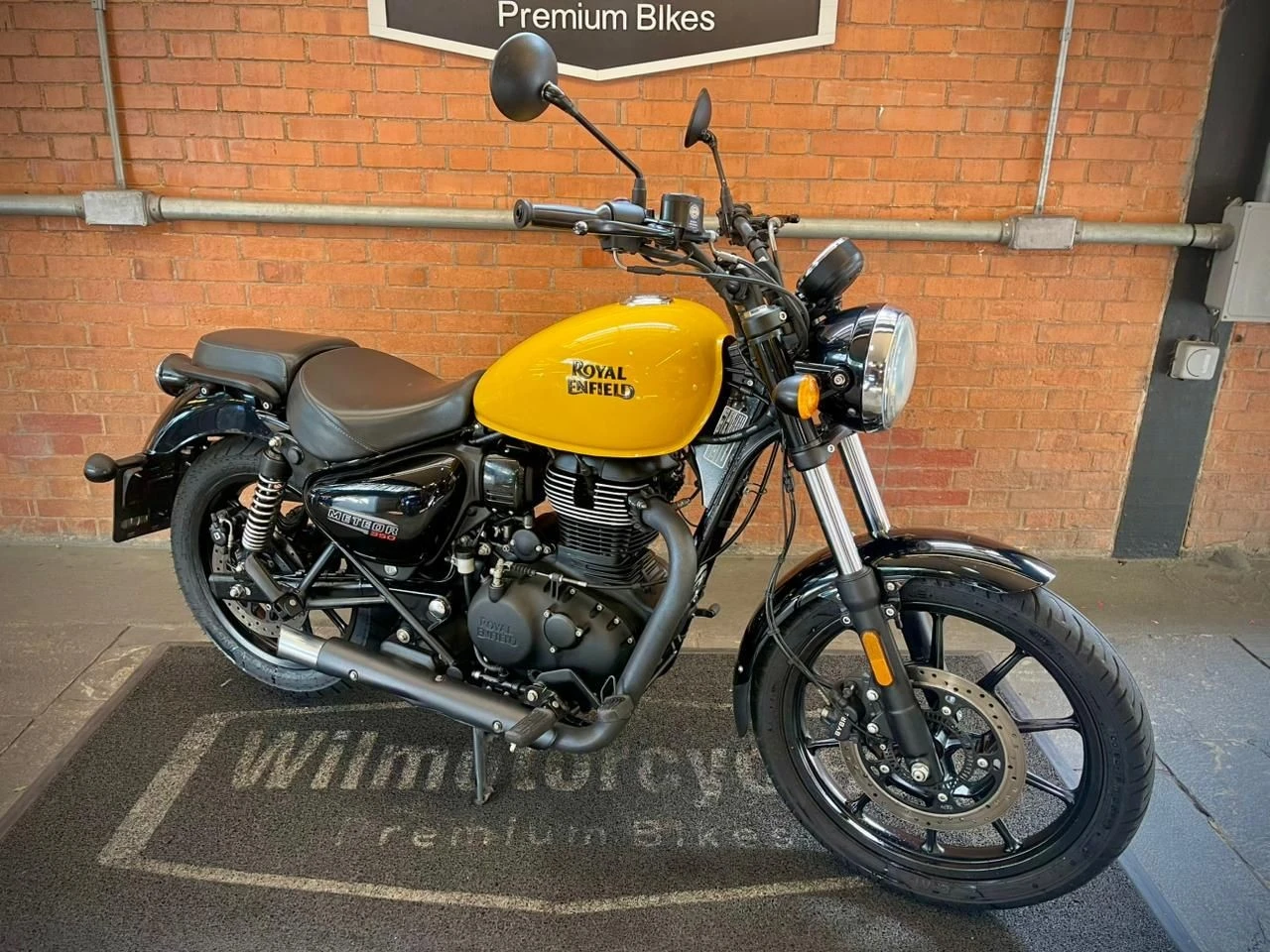 Royal Enfield Meteor; motocicleta na cor amarela; muito bem conservada; equipada com sistema de freios com assistência e discos; pastilhas em bom estado; pneu traseiro novo; suporte para malas instalado trazendo mais praticidade; ponteiras esportivas instaladas acompanhando escapamento original; ideal para quem busca conforto, estilo clássico e excelente economia no dia a dia ou em passeios; WILMOTORCYCLES, SUA MOTO ESTÁ AQUI.