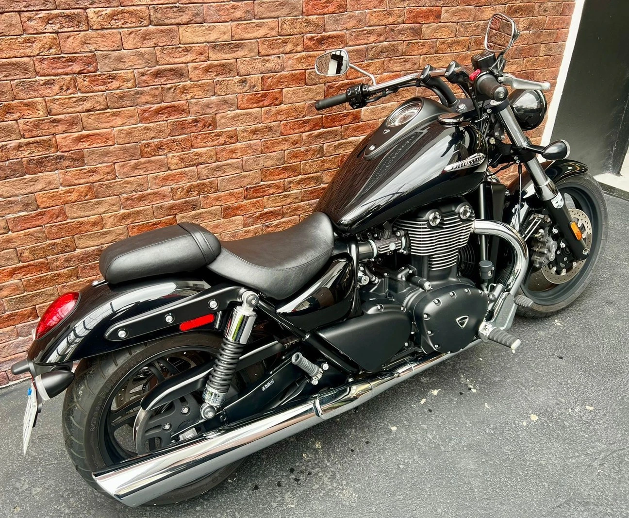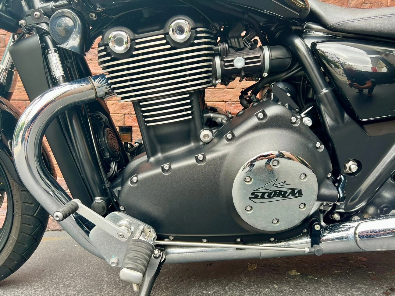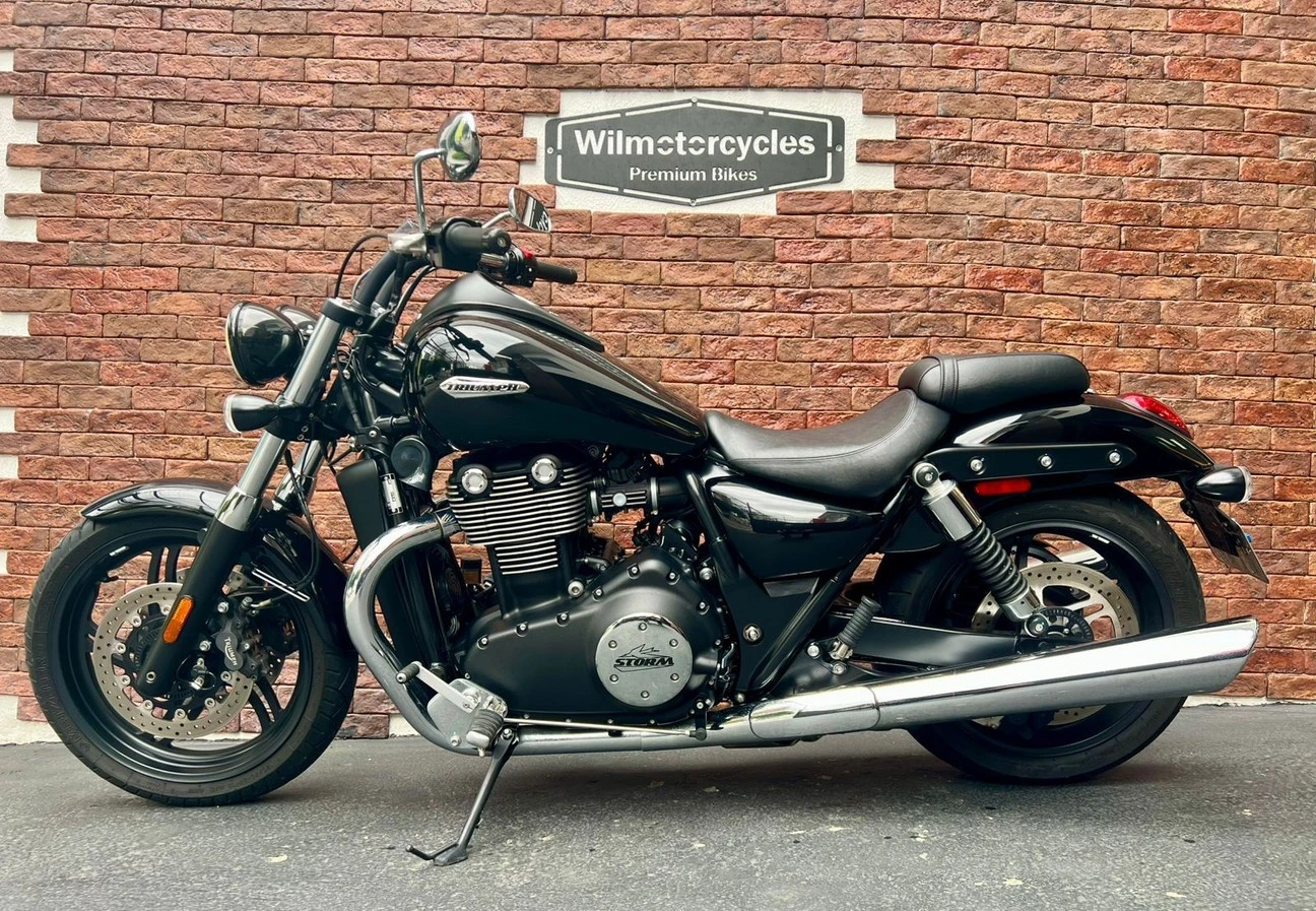 Triumph Thunderbird Storm; motocicleta extremamente bem conservada; baixíssima quilometragem; cruiser de grande porte com presença marcante e acabamento predominantemente escurecido que reforça o visual agressivo e exclusivo; equipada com motor de alta cilindrada que entrega torque abundante e desempenho impressionante; excelente conforto para piloto e garupa; ideal para longas viagens com estabilidade e muita personalidade; modelo diferenciado para quem busca força, estilo e exclusividade em uma verdadeira muscle cruiser; WILMOTORCYCLES, SUA MOTO ESTÁ AQUI.