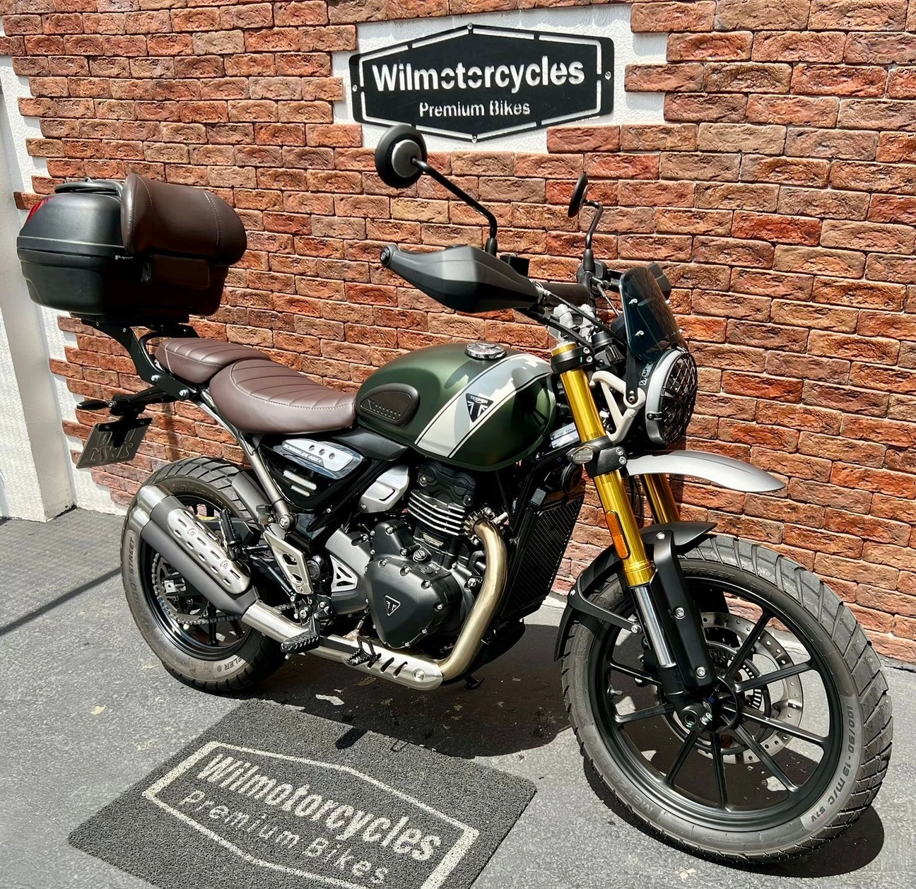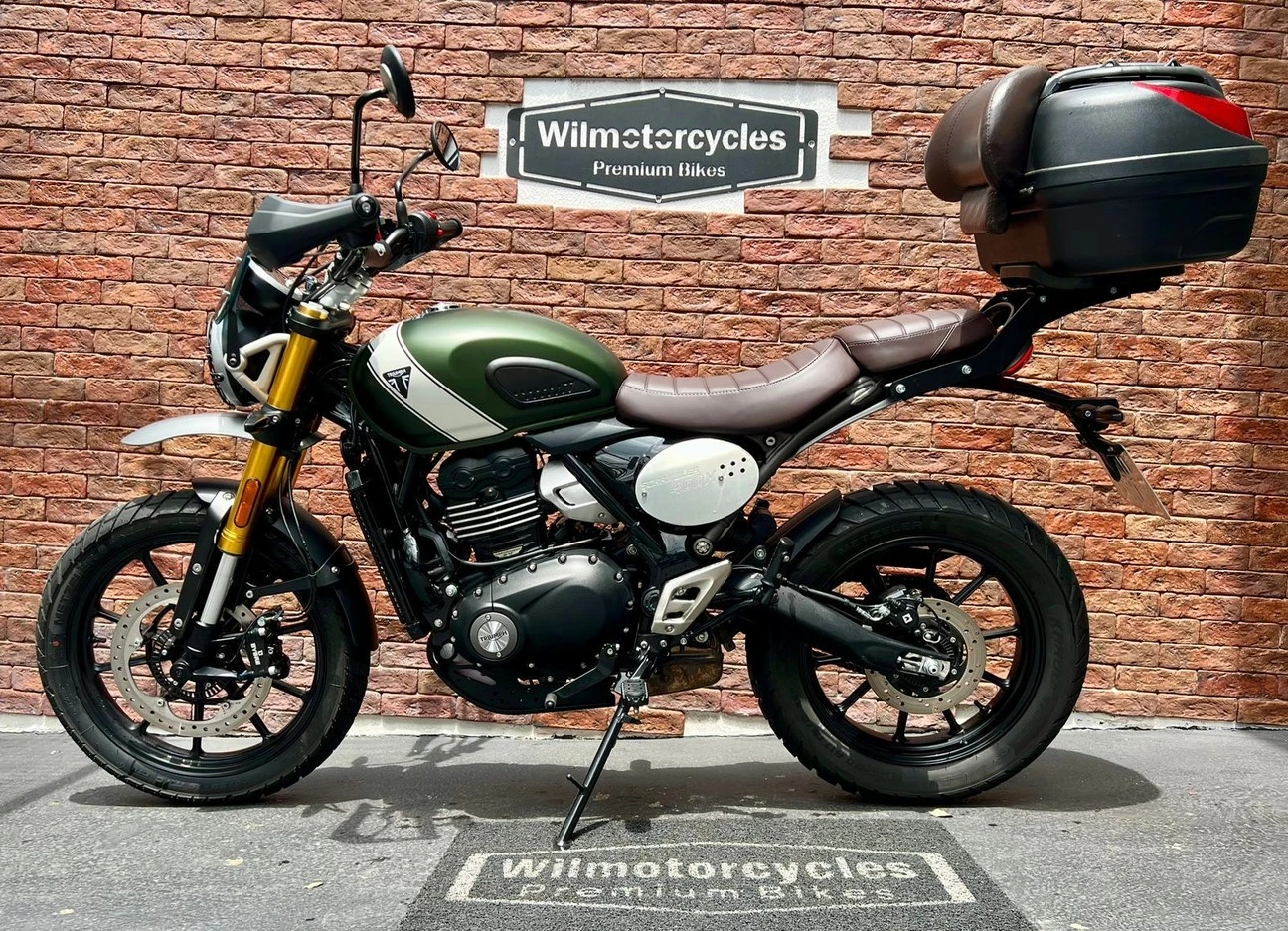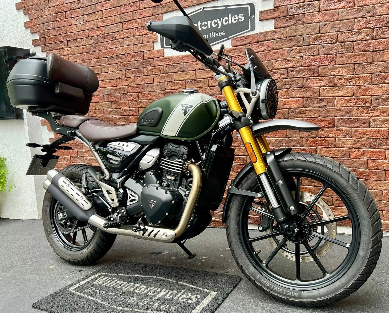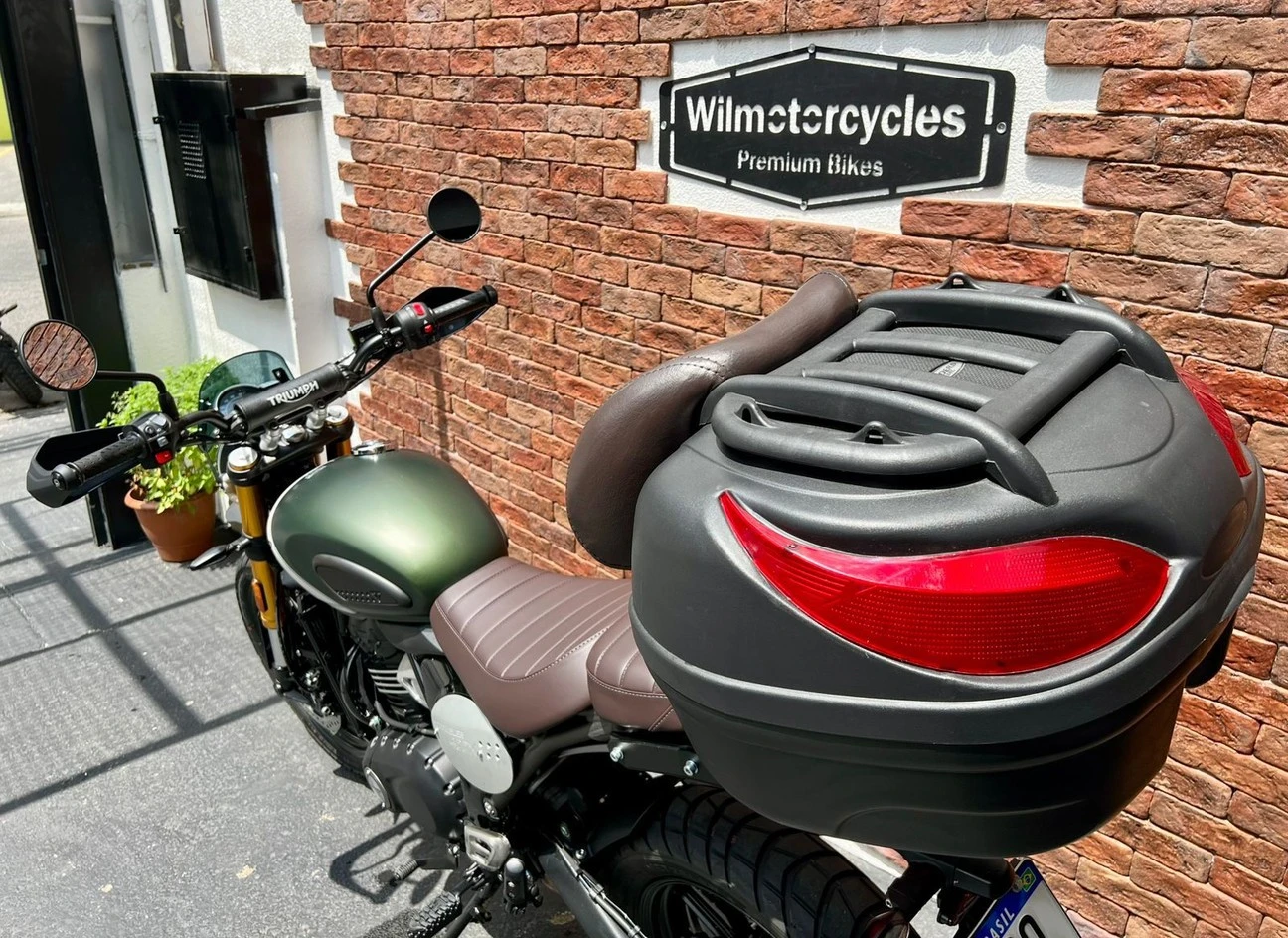 Triumph Scrambler X; motocicleta praticamente nova; único dono; baixíssima quilometragem; muito bem conservada; equipada com top case com encosto proporcionando mais conforto ao garupa; paralama off road original da marca agregando estilo aventureiro e proteção extra; ideal para quem busca uma scrambler moderna, versátil e pronta para o uso urbano ou aventuras fora do asfalto; WILMOTORCYCLES, SUA MOTO ESTÁ AQUI.