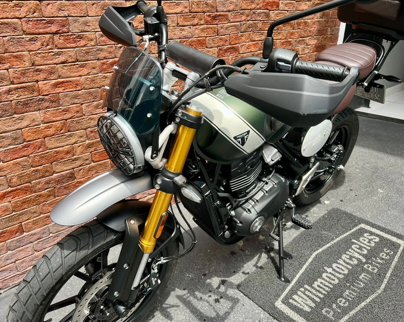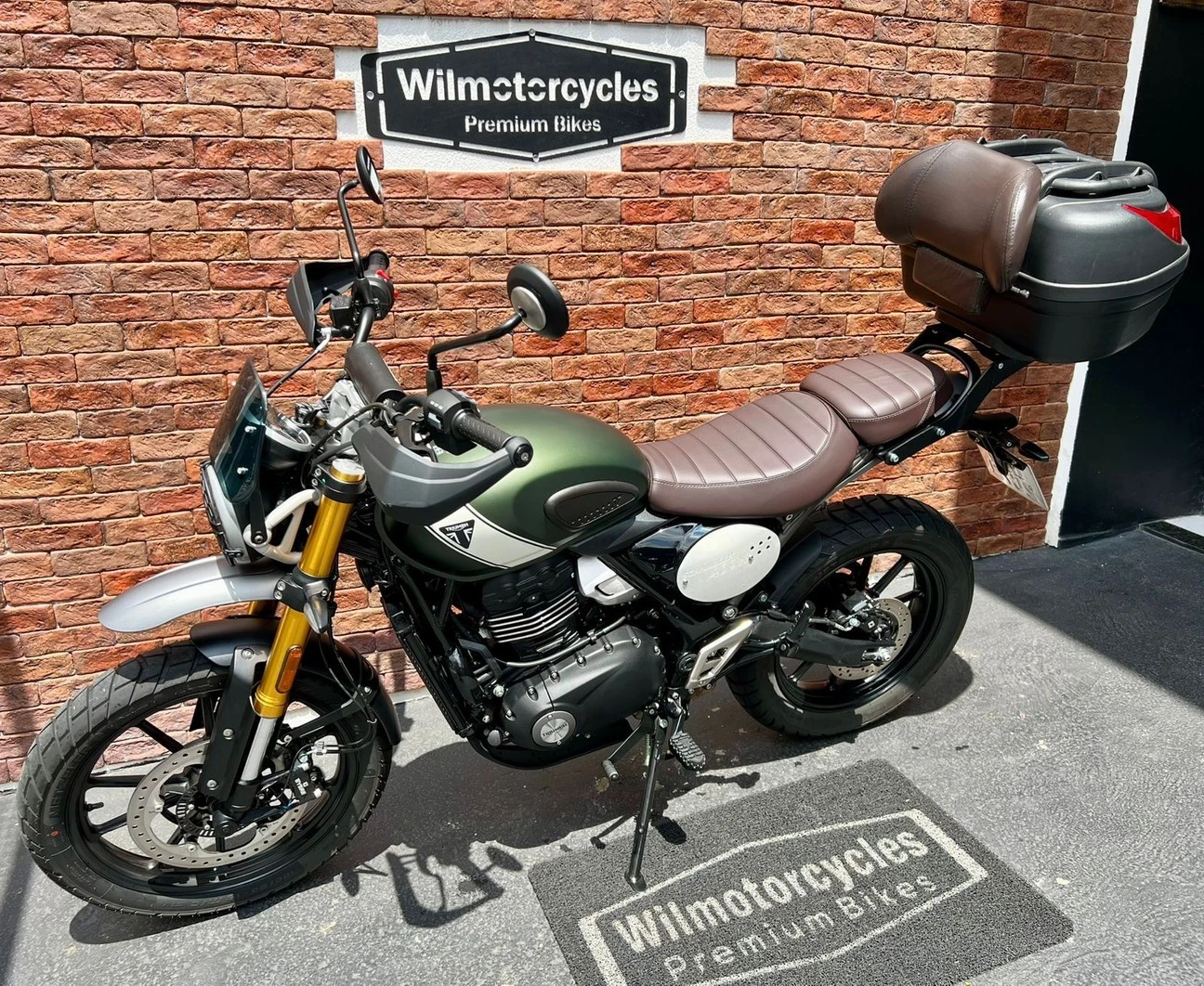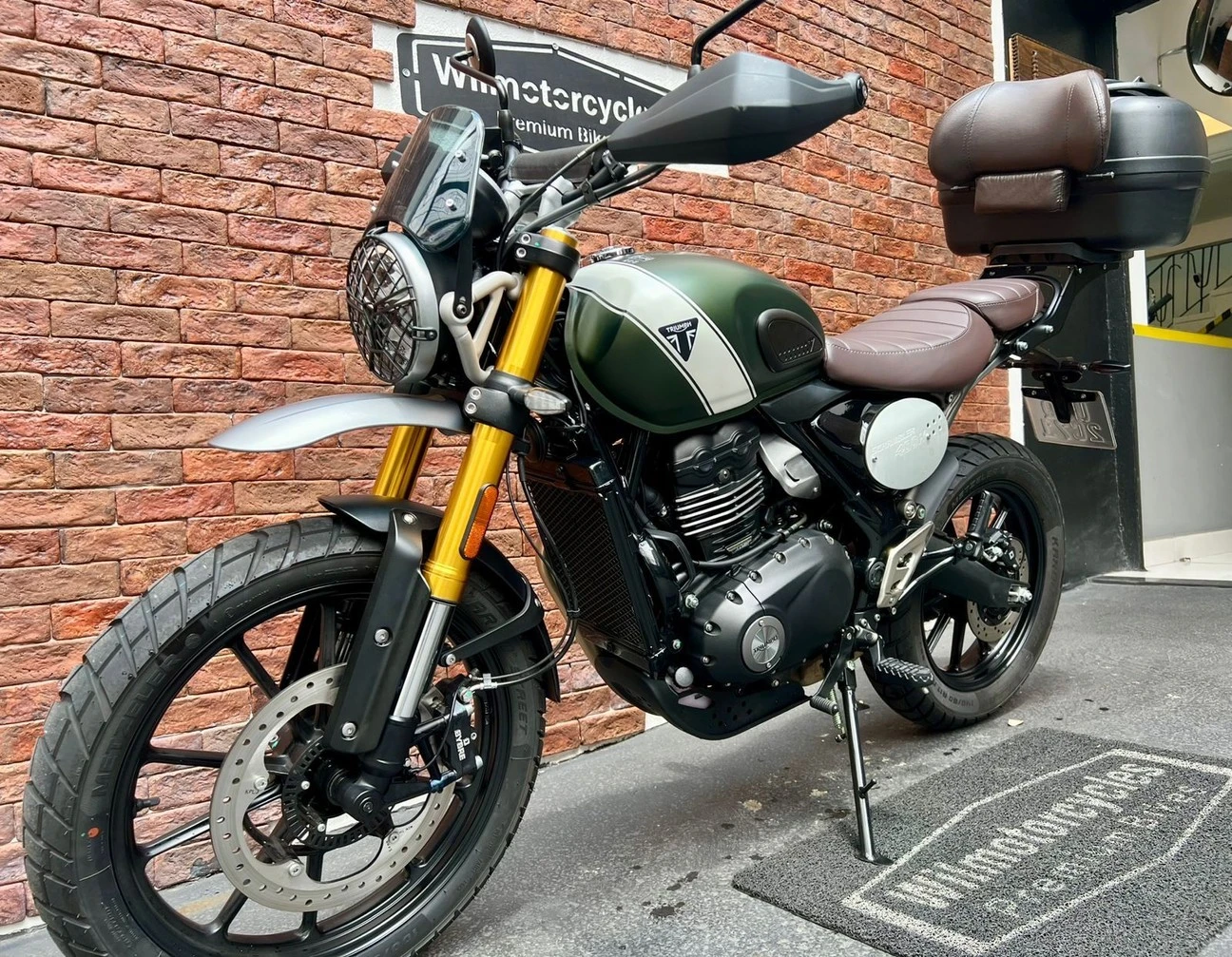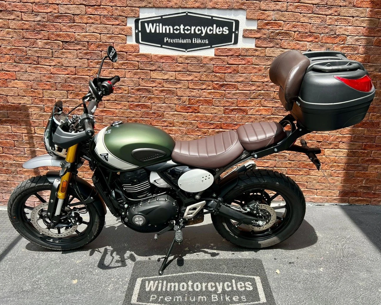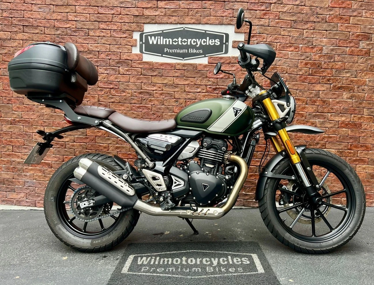 Triumph Scrambler X; motocicleta praticamente nova; único dono; baixíssima quilometragem; muito bem conservada; equipada com top case com encosto proporcionando mais conforto ao garupa; paralama off road original da marca agregando estilo aventureiro e proteção extra; ideal para quem busca uma scrambler moderna, versátil e pronta para o uso urbano ou aventuras fora do asfalto; WILMOTORCYCLES, SUA MOTO ESTÁ AQUI.