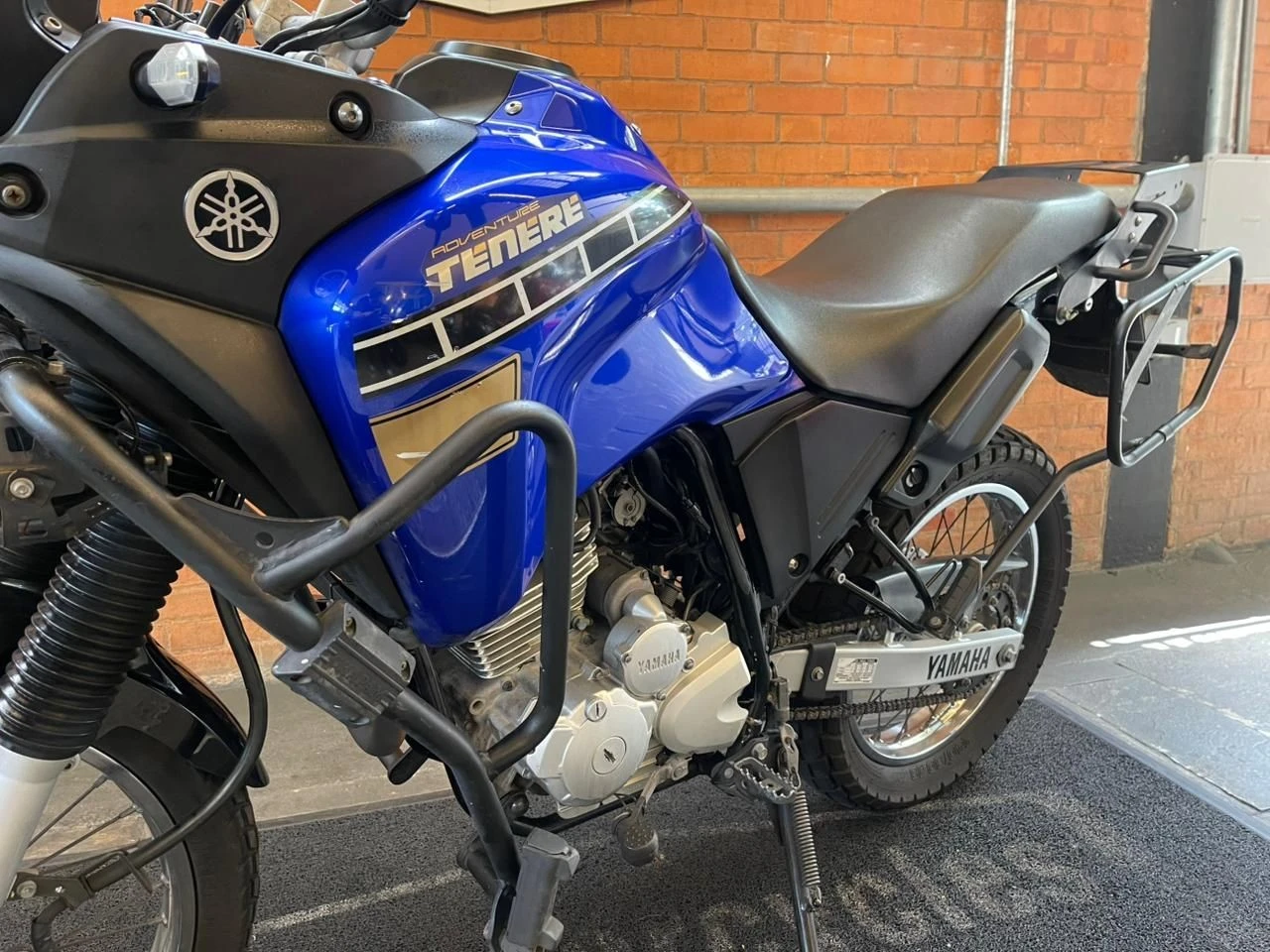 Yamaha Tenere; motocicleta trail robusta e muito bem conservada; pneus em bom estado; pastilhas em bom estado; protetor de farol oferecendo mais segurança ao conjunto óptico; protetor de carenagem agregando proteção em uso urbano e fora de estrada; bolha frontal proporcionando melhor conforto aerodinâmico; suportes para malas e para baú traseiro ampliando capacidade para viagens; segundo proprietário; acompanha manual e chave reserva; ideal para quem busca uma moto confiável, versátil e preparada para o dia a dia ou aventuras; WILMOTORCYCLES, SUA MOTO ESTÁ AQUI.