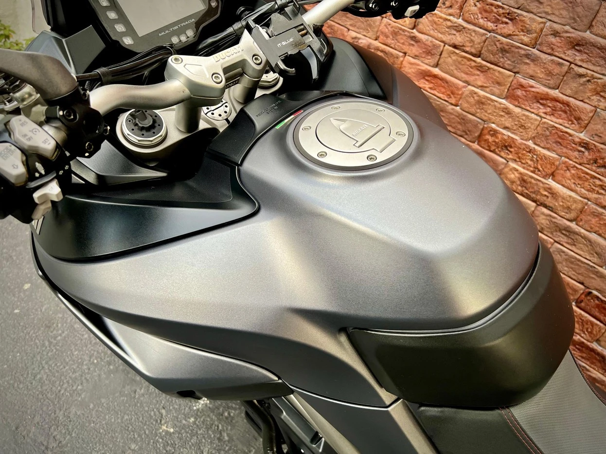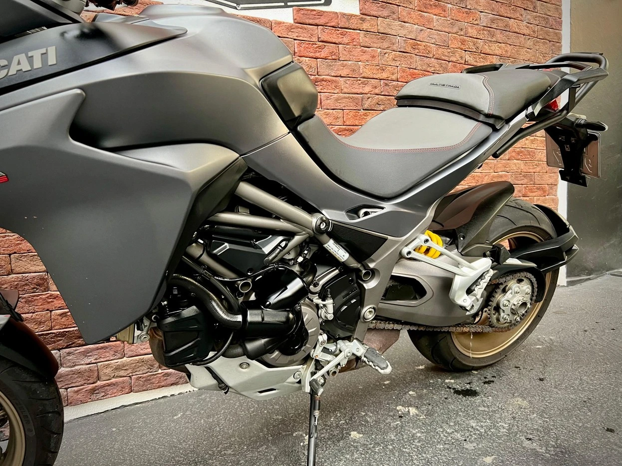 Ducati Multistrada S; motocicleta big trail premium de alta performance; muito bem conservada; baixa quilometragem; acompanha malas laterais originais proporcionando praticidade para viagens; motor potente com entrega de torque forte e progressiva garantindo desempenho em qualquer situação; equipada com suspensão eletrônica ativa oferecendo máximo conforto e estabilidade; sistema de freios de alta performance proporcionando segurança e precisão; painel moderno com tecnologia avançada e ótima leitura das informações; modos de pilotagem que permitem adaptar a moto para uso urbano, estrada ou condução esportiva; ideal para quem busca uma motocicleta sofisticada, tecnológica e extremamente versátil para qualquer tipo de trajeto; WILMOTORCYCLES, SUA MOTO ESTÁ AQUI.