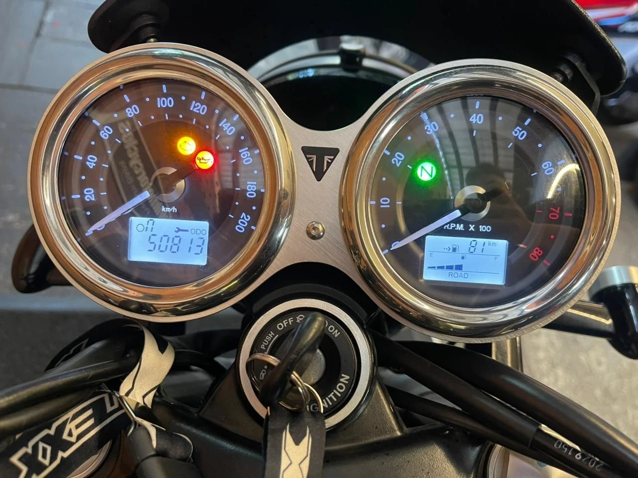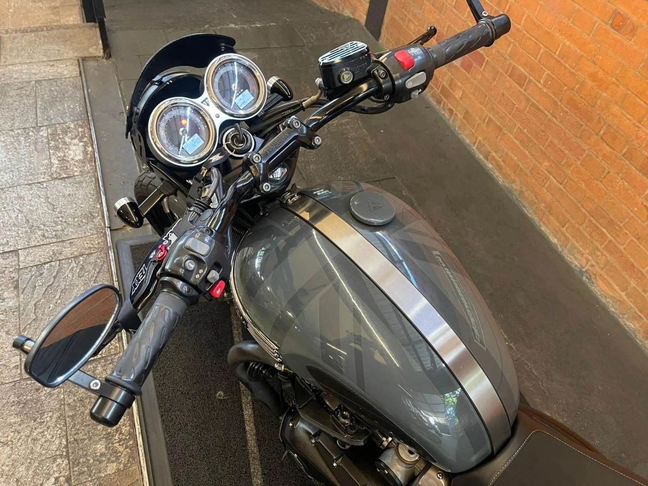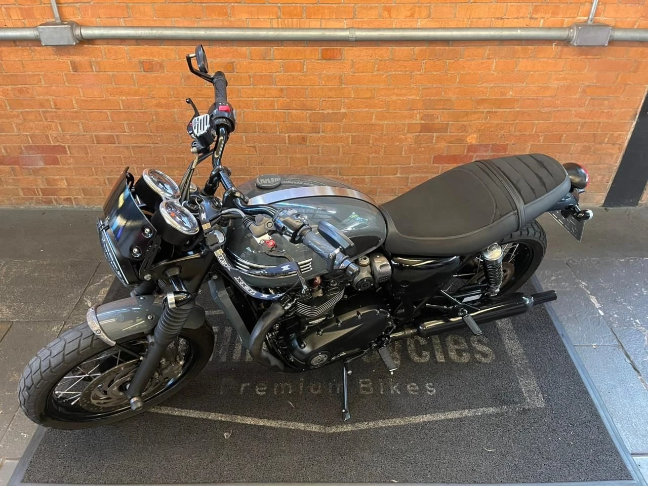 Triumph Bonneville T Black; motocicleta clássica premium com visual sofisticado e presença marcante; muito bem conservada; motorização de alta cilindrada proporcionando torque forte e condução prazerosa; sistema de freios com discos duplos na dianteira garantindo excelente capacidade de frenagem; pintura personalizada valorizando ainda mais o conjunto; manutenção em dia com fluidos e óleo do motor em boas condições; equipada com sistema de freios com tecnologia antitravamento aumentando a segurança; controle de tração auxiliando estabilidade; aquecimento de manoplas oferecendo mais conforto; piscas em tecnologia moderna trazendo visual mais limpo; retrovisores posicionados no guidão com estilo diferenciado; manetes com regulagem permitindo melhor ajuste ao piloto; ideal para quem busca uma clássica completa, confortável e cheia de personalidade; WILMOTORCYCLES, SUA MOTO ESTÁ AQUI.