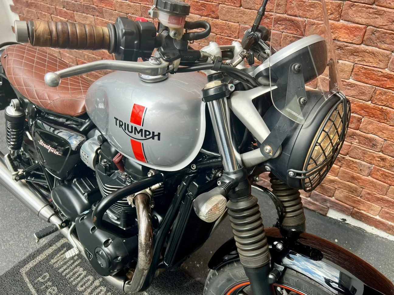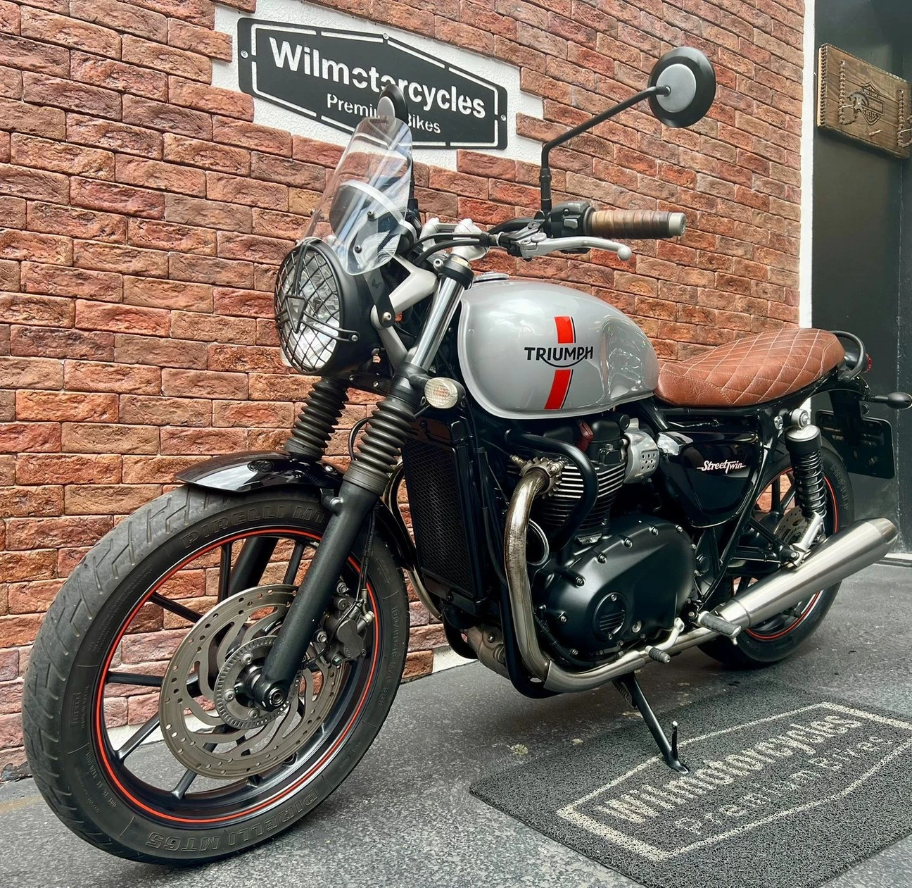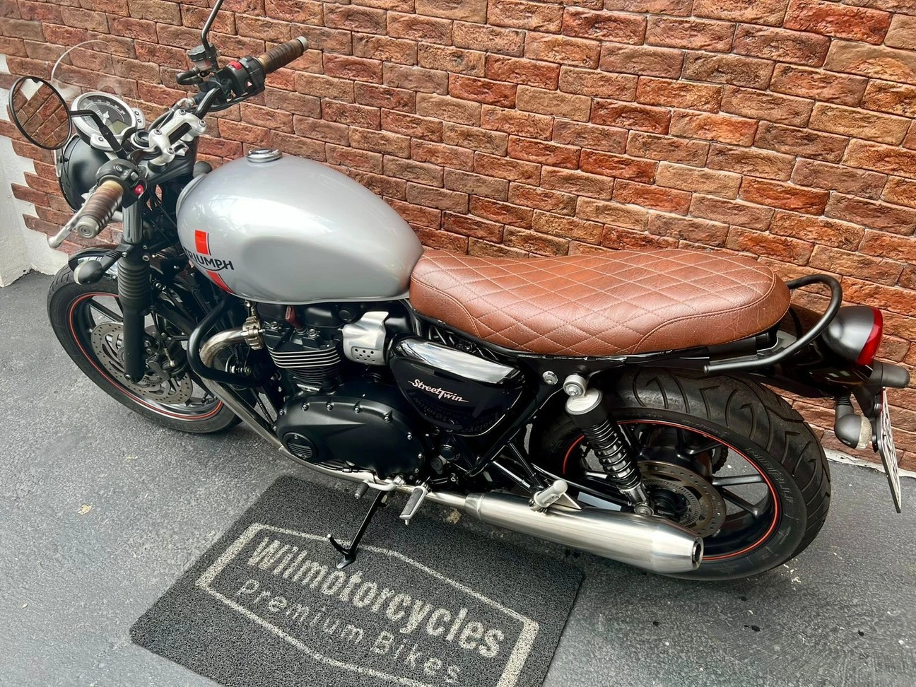 Triumph Street Twin; motocicleta clássica moderna muito bem conservada; quilometragem compatível com a categoria; banco Pedrinho instalado acompanhando banco original proporcionando mais conforto e versatilidade; protetor de farol oferecendo mais segurança ao conjunto óptico; ideal para quem busca estilo retrô com tecnologia atual, conforto e excelente experiência de pilotagem; WILMOTORCYCLES, SUA MOTO ESTÁ AQUI.