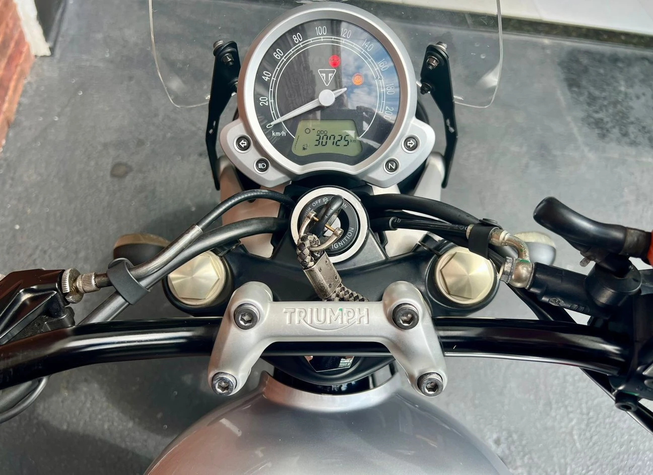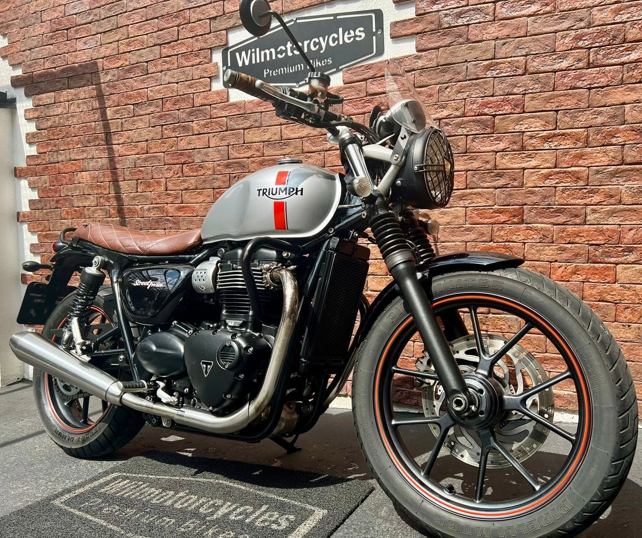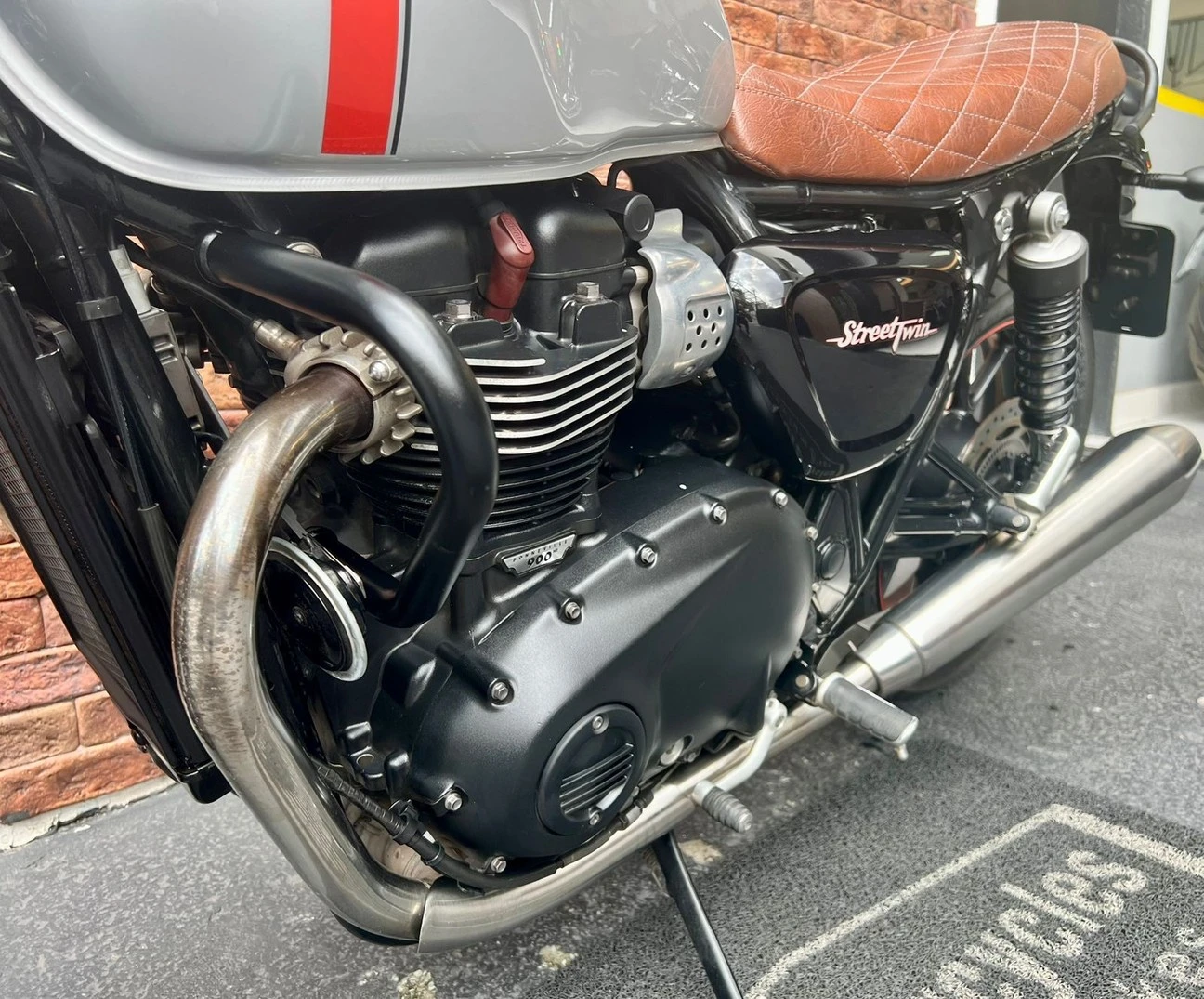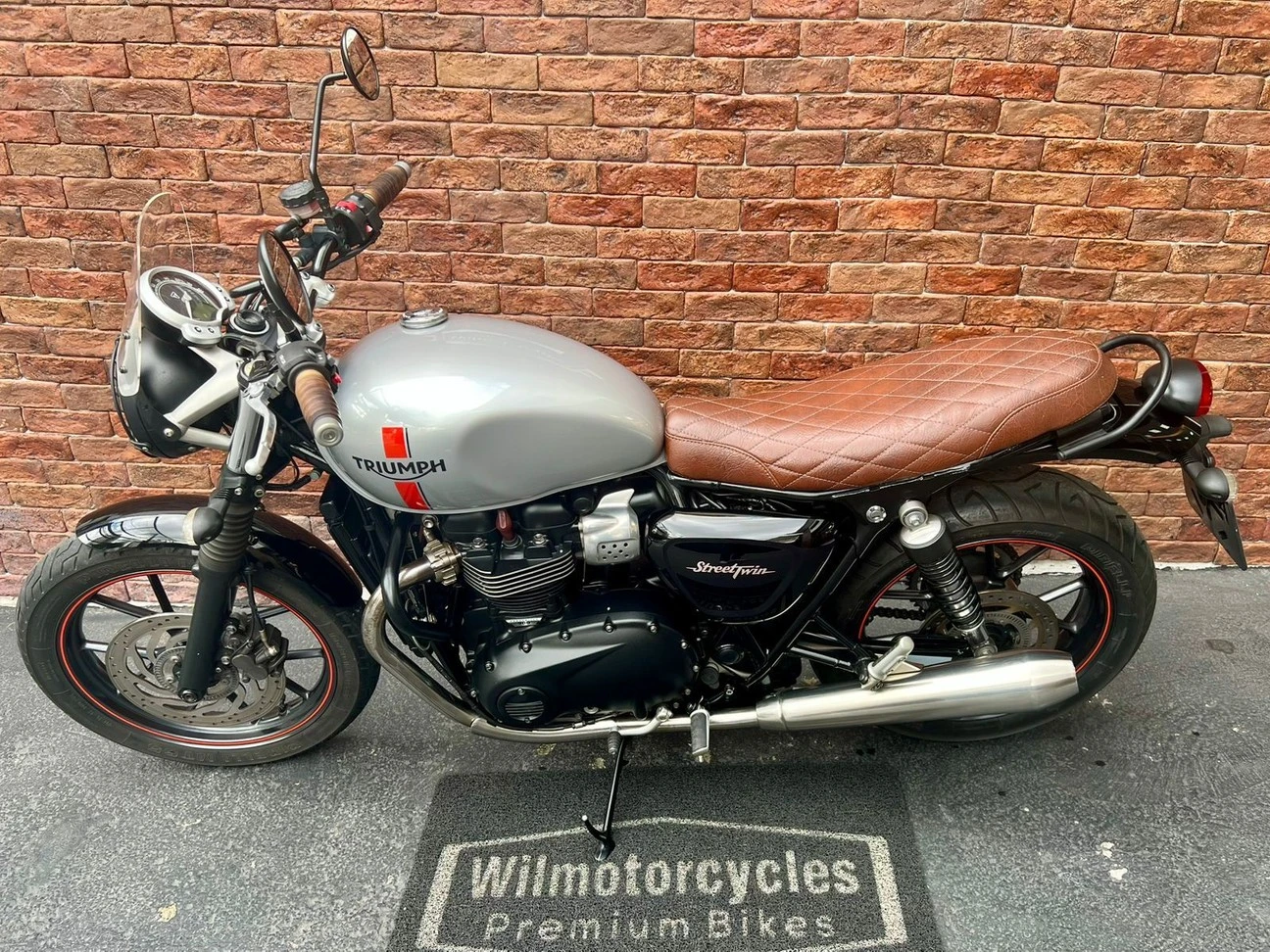Triumph Street Twin; motocicleta clássica moderna muito bem conservada; quilometragem compatível com a categoria; banco Pedrinho instalado acompanhando banco original proporcionando mais conforto e versatilidade; protetor de farol oferecendo mais segurança ao conjunto óptico; ideal para quem busca estilo retrô com tecnologia atual, conforto e excelente experiência de pilotagem; WILMOTORCYCLES, SUA MOTO ESTÁ AQUI.