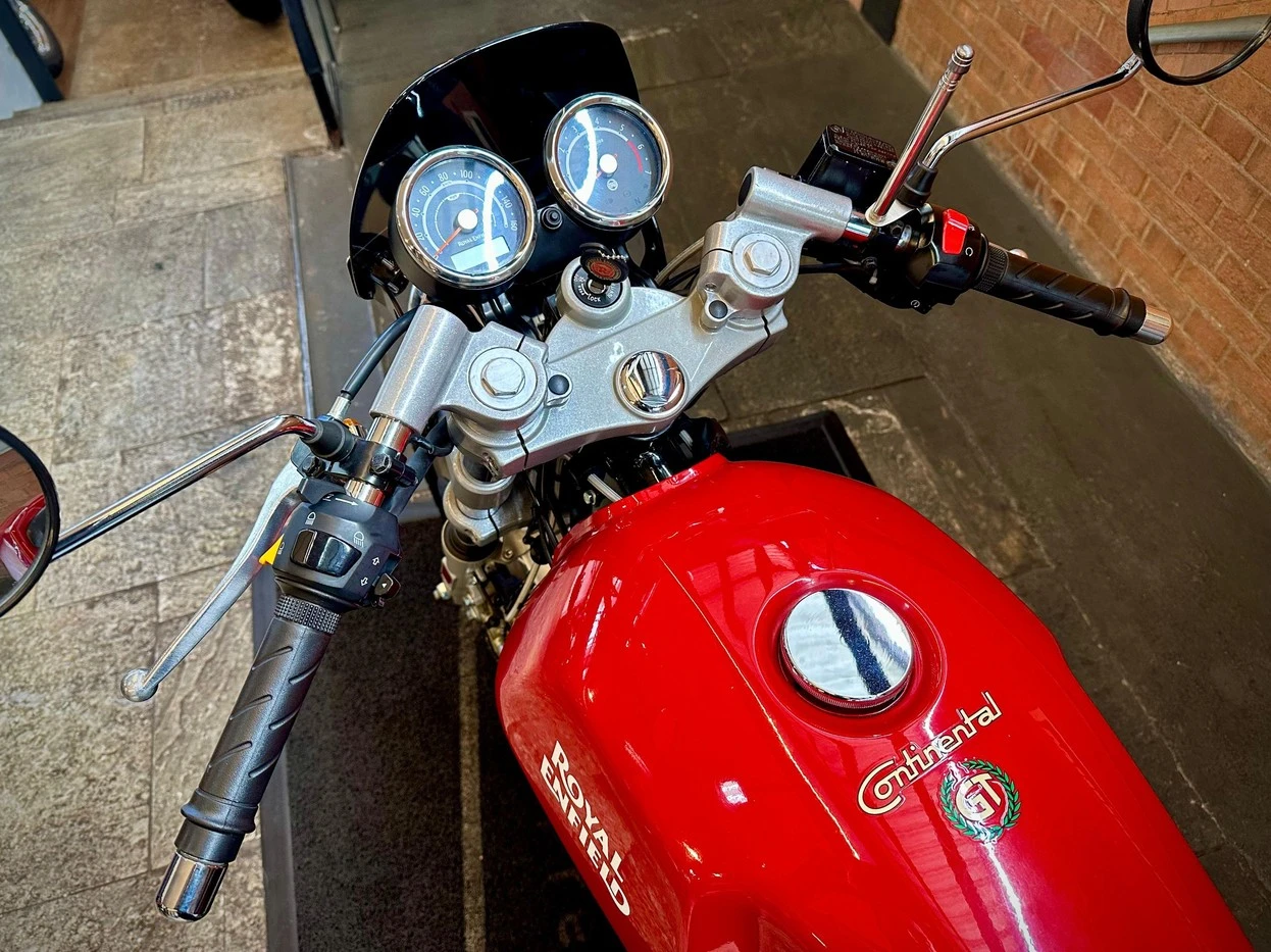 Apresentamos a Royal Enfield Continental GT, uma motocicleta com proposta café racer que combina estilo clássico com identidade marcante. Com baixa quilometragem e único proprietário, mantém suas características originais e um conjunto bem preservado. Oferece uma pilotagem envolvente, com posição mais esportiva e foco na experiência de condução. Acompanha manual e chave reserva, além de banco single solo que reforça o visual tradicional do modelo. Uma opção interessante para quem busca uma motocicleta diferenciada, com estilo retrô e proposta única.