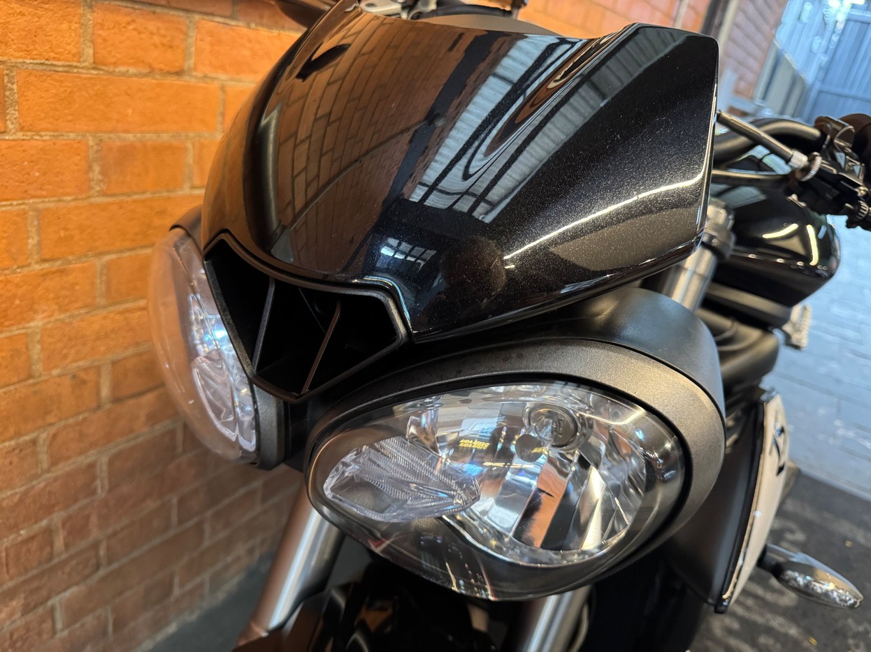 Se você procura uma naked esportiva com desempenho de pista e estilo urbano, essa é a moto ideal. Equipada com motor tricilíndrico de 765cc, entrega potência, agilidade e uma experiência de pilotagem incomparável. Versão RS — topo de linha — com suspensão Öhlins, freios Brembo, quickshifter, modos de pilotagem e painel TFT.