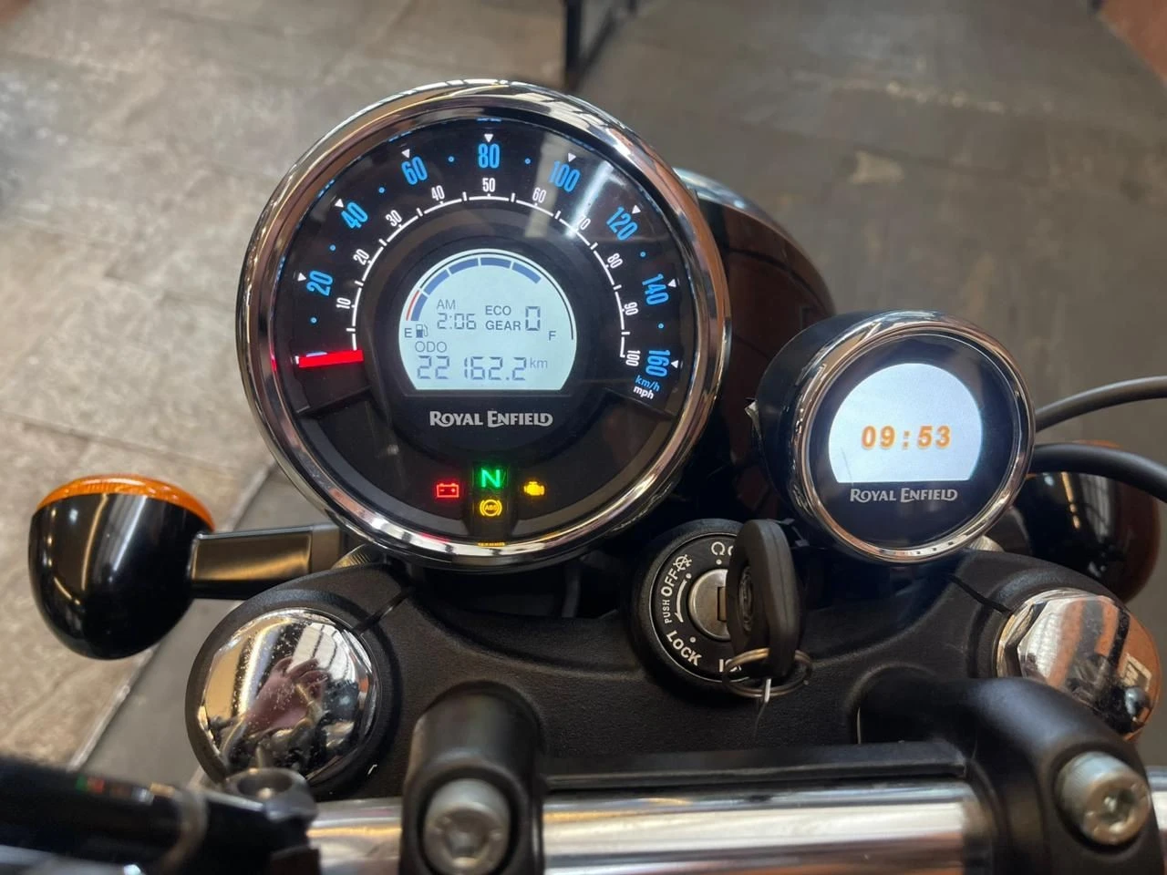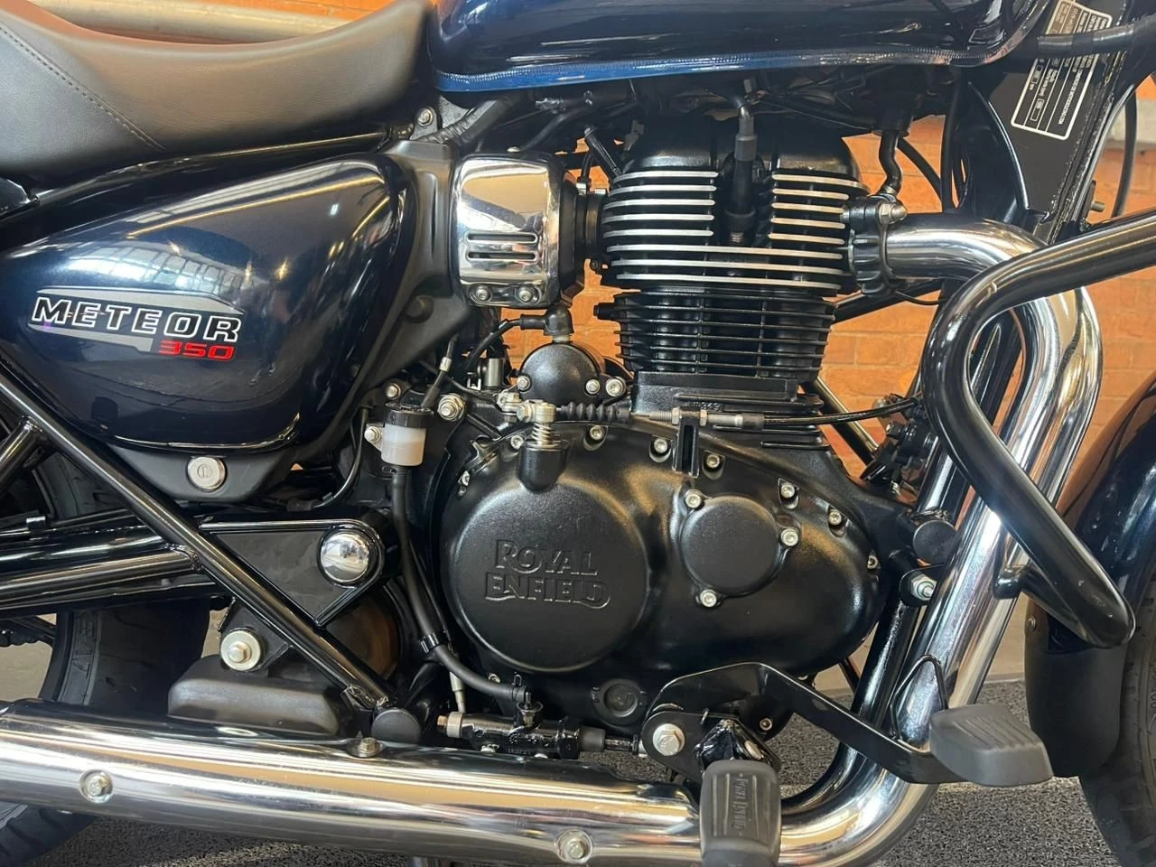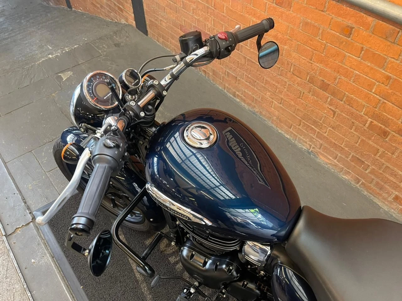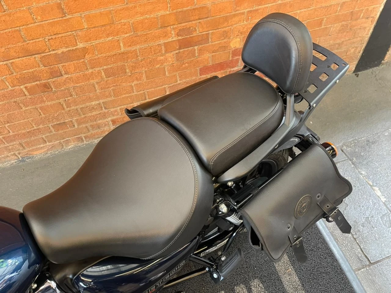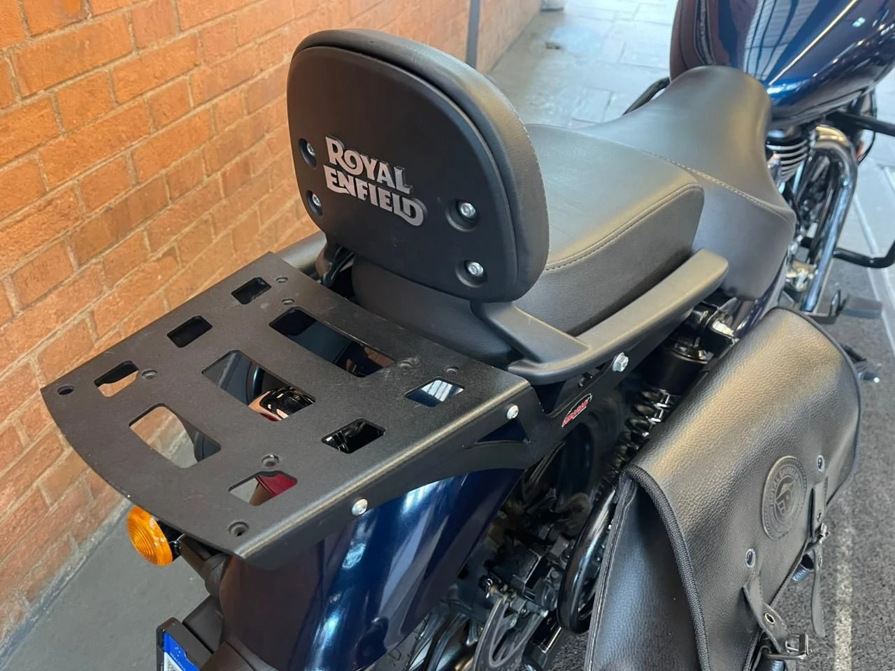 Royal Enfield Meteor; moto na cor azul; muito bem conservada; sistema de freios com assistência e discos; pastilhas novas; equipada com suporte para baú; suporte para malas; malas laterais instaladas; protetor de motor; encosto para o garupa; ponteiras esportivas que reforçam o visual e o som característico; ideal para quem busca conforto, estilo clássico e uma pilotagem tranquila tanto no dia a dia quanto em viagens; WILMOTORCYCLES, SUA MOTO ESTÁ AQUI.